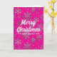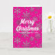 Envíe sus cálidos deseos de vacaciones con esta moderna y elegante tarjeta de Navidades rosa con elegantes copos de nieve plateados en un fondo de color moda. Este diseño es moderno en las tarjetas de vacaciones tradicionales y es perfecto para los amantes de la moda y del diseño contemporáneo. La plantilla es totalmente personalizable, lo que facilita añadir tu propio nombre familiar, saludo personal o mensaje especial de vacaciones. Una elección hermosa y única para enviar Navidades a amigos, familiares o colegas. Ideal como tarjeta de vacaciones para los seres queridos, este elegante diseño también hace una gran opción personalizada para los negocios que buscan compartir los deseos festivos de una manera memorable y elegante.