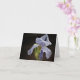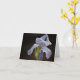 Una tarjeta de notas en blanco con un elegante Iris después de una lluvia primaveral. Hermosa tarjeta de notas para cualquier ocasión.