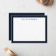 Elegante Navy Fronteriza Moderna y tarjeta de nota plana blanca. Personaliza con estilo con tu monograma inicial y nombre.