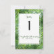 Un diseño boda de moda para una recepción de bodas, una elegante tarjeta de número de mesa con exuberante vegetación tropical, enmarcando un área de plantilla personalizada con sus nombres en escritura moderna, la fecha y un gran número de mesa.