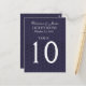 Asegúrese de que sus huéspedes encuentren su camino a sus mesas con estas elegantes tarjetas de mesa de boda. Personalice con sus nombres, fecha de boda y número de tabla. El tamaño es de 4,25 x 5,6", y tendrá un acabado brillante. Puede cambiar el color de fondo para un aspecto diferente. Necesitarás tarjetas de boda para que las tarjetas estén en posición vertical sobre tu mesa.
