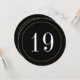 Clásico número de mesa en blanco y negro sobre su elección de papel con círculo de corte y borde de oro falso. También hay disponibles varios tipos de papel, esquinas cuadradas o redondeadas.