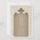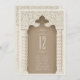 Disfrute de una elegancia intemporal en su día especial con nuestra exquisita tarjeta de boda. Diseñada para añadir un toque de sofisticación a su decoración nupcial, esta carta presenta un opulento telón de fondo de taupe, complementado artistalmente por un intrincado diseño de arco de marfil que evoca la grandeza de la arquitectura clásica. Los patrones ornamentales y de desplazamiento enmarcan delicadamente la característica central, un número atrevido, en tonos café, que indica el número de la mesa, rodeado de sutiles acentos de inspiración Art Déco en una delicada sombra de almendras. Con un susurro de encanto vintage y una paleta de colores neutros, esta carta es la pieza perfecta para combinar a la perfección su temática boda, realzando el ambiente con un lujo sobrio y un estilo refinado.
