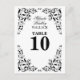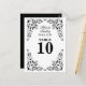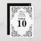 © 2011 Diseños de Socialite. Una elegante tarjeta de números de mesa en blanco y negro con magníficos remolinos decorativos en esquina listos para ser personalizados para su evento. Se puede cambiar el estilo de letra. ¿Necesita AYUDA con la personalización? Por favor, no dudes en contactarme con tus requisitos y un enlace a este diseño.
