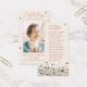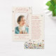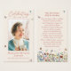 Esta es una celebración moderna y elegante de la tarjeta de oración del monumento a la vida. El diseño cuenta con un hermoso tipo de letra caligráfica y hermosas flores silvestres en tonos rosa pastel, púrpura, azul, amarillos y rojos o terracota, además de delicadas mariposas que revolotean. Esta tarjeta de oración funeraria se puede personalizar fácilmente con tu propia foto para crear un tributo especial para tu ser querido usando la plantilla proporcionada. Póngase en contacto con el diseñador para cualquier consulta relacionada con este diseño o para cualquier producto que coincida.