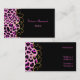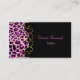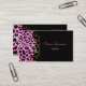 Elegante tarjeta de moda de negocios hecha en negro, con gráficos de un patrón de jaguar rayado rosa y negro, a la izquierda, con un elegante tono dorado florece en el borde. El texto rosa personalizado, en la parte delantera y trasera, está listo para personalizar a sus necesidades. Una carta preciosa que ofrece una primera impresión impresionante.