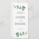 Guíe a sus huéspedes durante su día especial con esta elegante tarjeta de programa de ceremonia de boda de eucalipto. Con un elegante diseño vertical adornado con delicada vegetación acuática, este diseño minimalista incluye el orden de la ceremonia y una lista completa de fiestas de bodas. Perfecto para bodas en el jardín, celebraciones rústicas o eventos inspirados en la naturaleza, esta plantilla de programa editable combina tipografía moderna con encanto botánico intemporal para complementar cualquier tema boda.