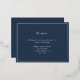Esta elegante y moderna tarjeta de recepción de bodas de plata marina es perfecta para su moderno boda minimalista. Este diseño presenta una hermosa caligrafía de Relieve metalizado plateado con un fondo azul marino que combina con el boda tradicional clásico o el boda de boho minimalista en primavera, verano, otoño o invierno. Por favor, siéntase libre de contactarnos con cualquier pregunta sobre este diseño, nos encantaría ayudarle a hacer que su boda sea exactamente como siempre soñó ser.