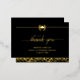 Elegante tarjeta de agradecimiento de graduación de cuadro de Relieve metalizado, personalice el texto de graduación en negro y oro añadiendo el nombre y los detalles del graduado.