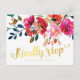 Tarjetas postales de respuesta de boda elegantes con un fondo blanco clásico, una exhibición floral de acuarela, un título tipográfico de falso foil de oro y una plantilla moderna de RSVP.
