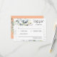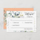 Esta boda respuesta al evento RSVP tarjeta de gabinete con código QR cuenta con un elegante estilo minimalista moderno con arreglos de hojas de follaje de color agua verde y hermosas caligrafías y fuentes tipográficas limpias y serif sobre un fondo de melocotón. La sencillez y el diseño limpio de esta tarjeta de gabinete de respuesta RSVP de boda funciona bien con todos los temas bodas y definitivamente una gran incorporación a su boda. Sólo personalizar los nombres de la pareja, fecha, sitio web boda, código QR, y otra información en unos pocos pasos fáciles y personaliza para darle un agradable toque personal. Por favor, tenga en cuenta: la elegante y bella tipografía de frases de "responder amablemente" junto con las disposiciones de hojas de eucalipto de color verde acuático y otros elementos de arte gráfico como las líneas y cajas rectangulares no pueden editarse, cambiarse, moverse ni eliminarse. Están arreglados.