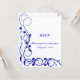 © Socialite Designs. Elegante tarjeta de respuesta con remolinos azul real y blanco lista para ser personalizada con su propia información. Hemos incluido una opción de respuesta por correo electrónico a esta elegante tarjeta de respuesta. Elija entre varios tipos de papel para invitaciones. ¿Necesita ayuda con la personalización? Por favor, no dude en contactarme con sus requisitos.