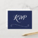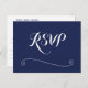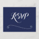Tarjetas postales de RSVP de boda azul marino elegantes con texto blanco intercambiable y gráficos decorativos