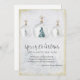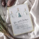 El elegante diseño acuático cuenta con tres adornos navideños redondos con diseños botánicos y acentos dorados. Feliz Navidad está escrito en una caligrafía tradicional y clásica. Y un Año Nuevo Feliz está escrito en una simple letra vertical. Puede personalizar 3 líneas de texto para un mensaje de vacaciones personalizado y agregar su nombre. Toda la carta está enmarcada en un borde dorado suave.