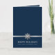 Envíe sus mejores deseos esta temporada de vacaciones con esta elegante tarjeta de vacaciones familiares. La parte delantera muestra su preciada foto familiar enmarcada por un borde metálico de plata y un cautivador copo de nieve, mientras que una pancarta azul marino debajo dice "Felices vacaciones con deseos cálidos". Dentro, la magia de la temporada continúa con un mensaje de personalizable que expresa alegría, amor y momentos apreciados, firmado con la firma de escritura de tu familia. La parte posterior cuenta con un pequeño copo de nieve para la continuidad del diseño. Crea un saludo personalizado y memorable que capta el espíritu de las vacaciones. Perfecto para compartir amor y alegría con tus seres queridos.