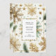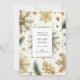 Envíe cálidos y elegantes deseos con esta tarjeta de vacaciones de lujo verde y dorado. Con copos de nieve dorados en bonito, detalles florales en acuarela, acentos de pino, formas geométricas modernas y tipografía elegante, este diseño invernal abstracto aporta un toque sofisticado a sus saludos de temporada.