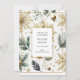 Envíe cálidos y elegantes deseos con esta tarjeta de vacaciones de lujo verde y dorado. Con copos de nieve dorados en bonito, detalles florales en acuarela, acentos de pino, formas geométricas modernas y tipografía elegante, este diseño invernal abstracto aporta un toque sofisticado a sus saludos de temporada.