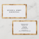 Una elegante tarjeta de visita con fondo blanco, texto negro y un falso borde dorado.