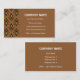 Una tarjeta de visita más formal con un patrón de "fleur-de-lys" en negro y marrón chocolate sobre un fondo café marrón, con letras blancas. Listo para su personalizar con sus propios detalles.