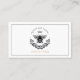 Diseño de tarjetas de negocios con miel de abeja. Elegante abeja reina y corona en formato de círculo de laurel con un borde negro. Hermoso estilo rústico de tierra con tipografía en blanco en blanco en negro y oro. Un tema de abejas para un colmenar, un negocio de productos de miel, o cualquier negocio que resuene con simbolismo de abejas.