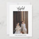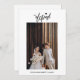 Elegante tarjeta de foto de la salida de la boda. Hermoso guión con mensaje, nombres y fecha modificables preescritos.