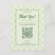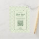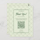 El diseño de esta tarjeta de agradecimiento para el negocio DIY incluye el código QR personalizado para la retroalimentación de la revisión y presenta un patrón de diamante geométrico de inspiración retro en elegantes tonos de verde. El diseño es llamativo y aporta un toque de sofisticación a cualquier paquete. La etiqueta crea una experiencia de desboxeo memorable.