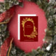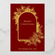 ¡Envíe un saludo de elegancia pura esta temporada de vacaciones! Esta lujosa tarjeta de Navidades cuenta con un rico fondo rojo intenso y adornado con un impresionante ilustracion botánico de Relieve metalizado dorado. Un arco ornamentado, intrincadamente detallado con poinsettias, bayas y follaje siempre verde, enmarca el mensaje central de "Feliz Navidad". Este exquisito diseño no fotográfico permite que brillen la belleza de las obras de arte y el texto personalizado. Bajo el arco, usted puede fácilmente personalizar el nombre de la familia y el año, mientras que la parte posterior de la tarjeta es completamente personalizable para su sentido mensaje de vacaciones. Diseño de Anna Szalacha © Happy Ann Designs.