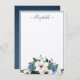 Eleva tu correspondencia con esta elegante tarjeta de nota personalizada de florales azul polvo y navy. Con elegantes flores de acuarela y tu nombre personalizado en letra moderna, es perfecta para notas de agradecimiento, mensajes personales o regalar a alguien especial. Una elección hermosa y práctica para el Día de la Madre, cumpleaños o elegancia cotidiana.