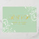 ¿Estás buscando la manera perfecta de celebrar una boda de primavera? No hay más que fijarse en nuestras encantadoras postales RSVP, elaboradas con un bonito fondo verde pastel pálido y viñas florales con adornos de Relieve metalizado dorado, hacen una declaración elegante y cautivadora. ¡Una perfecta adición pastel a tu celebración de temporada!