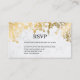 Elegante Tarjeta Rsvp De Boda De Mármol De Oro. Esta bonita invitación presenta una elegante tipografía negra y hojas doradas sobre fondo de mármol texturado. Puede personalizar pulsando el botón (Personalizar). Si desea personalizar más, vaya a (haga clic en el personalizar más adelante). Dimensión: Personalizable de 3,5" x 2": Sí, cree el suyo propio. —DMG La Perfección—