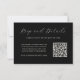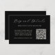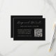 Aumente sus invitaciones de boda con nuestras modernas tarjetas RSVP en negro y crema, diseñadas para combinar elegancia y comodidad. Estas sofisticadas tarjetas tienen un fondo negro minimalista y texto crema, que exudan un encanto intemporal. Cada tarjeta incluye un código QR único que dirige a sus invitados a su sitio web boda personalizado, donde pueden encontrar sin esfuerzo RSVP y todos los detalles esenciales. Estas tarjetas RSVP, una combinación perfecta de tradición y tecnología, garantizan que su día especial sea lo más elegante y libre de estrés posible.