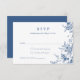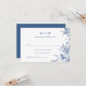 Elegante Tarjeta RSVP de Boda Botánica Floral de la Marina Azul. Plantilla RSVP de Invitación a Boda de Ilustracion Botánico Vintage. Tarjeta de respuesta Boda romántica de lujo. Tarjeta RSVP Real Azul Ornamento Floral de Victoria