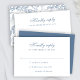 Elegante y elegante tarjeta de respuesta RSVP Wedding en un polvoriento color azul con un hermoso tipo de letra de guión. Listo para su personalizar con los detalles de su día especial. Por favor, navegue por la suite Boda Monograma y Escudo Floral para ver los productos correspondientes.