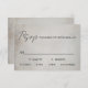 Mejore su experiencia de boda RSVP con nuestra elegante tarjeta RSVP gótica de personalizable para una comida mínima. Con un fondo angustiado y una tipografía moderna, esta carta permite a los huéspedes elegir sus comidas sin esfuerzo. Asegúrese de ver la colección de diseño para todas las necesidades fijas de su boda.