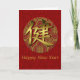 Elegante brocado rojo y dorado, con el dorado personaje de Salud en el medio y debajo el texto dice Feliz Año Nuevo. Los deseos de buena salud en el Año Nuevo están dentro y es totalmente personalizable de leer lo que quieras.