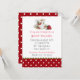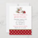 Elegante invitación a la fiesta del té, con un patrón de puntos polka rojo y blanco, en la parte inferior con un borde verde de vieiras. Una foto de un té de bonito y fresa decora la parte superior de la invitación. Personalice el texto del personalizado para su evento.