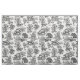 Patrón monocromo de tela en blanco y negro con caballos y árboles para la decoración rústica de campo, estilo inglés, francés o americano. El caballo es un animal majestuoso que encarna el poder espiritual de la independencia, libertad, nobleza, resistencia, confianza, triunfo, heroísmo y competencia. Su símbolo está asociado con fuerza, coraje y libertad.