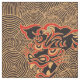 Elegante tela de dragón china con un color de fondo negro. El dragón es rojo con círculos dorados a su alrededor.