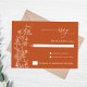 Elegante Terracota Floral Vintage Wedding RSVP. Esta invitación tiene un estilo suave y elegante con un fondo de terracota y delicadas flores blancas que se sienten tranquilas y atemporales. Los tipos de letra mezclan serif clásico con guión fluido, lo que le da un equilibrio de formalidad y calidez. Delicados ilustraciones florales blancos a la izquierda le dan un toque de encanto original e inspirado en la naturaleza. En general, el diseño es romántico pero sobrio, perfecto para un boda moderno pero tradicional.