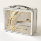 Cajas de almuerzo modernas y elegantes de marfil gris con oro polvoriento en monograma (el oro es un efecto digital, no un Relieve metalizado real).