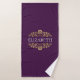 Una elegante toalla de baño monograma morado y dorado. Diversión como regalo dulce de 16. Añade tu nombre entre el florecimiento floral de oro en la parte delantera. Diseñado para ti por Blackberry Boulevard.