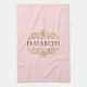 Una elegante toalla de cocina en monograma rosa y dorada de moda. Añade tu nombre entre el florecimiento floral de oro en la parte delantera. Diseñado para ti por Blackberry Boulevard.