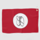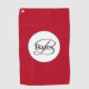 La elegante toalla de golf roja monograma tiene un sólido fondo rojo oscuro con un gran diseño de círculo blanco delineado en gris. La letra monograma del apellido se centra en círculo junto con el nombre completo en negro. Esta toalla de golf es un gran regalo para los cumpleaños, el Día de la Madre y más!