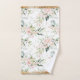 flores de color rosa bonito y rubia con toques verdes, así como un poco de eucalipto sobre un fondo blanco limpio. Esmalte de oro rústico falso y salpicaduras por todo este hermoso diseño. Perfecto para el cuarto de baño. Así que bonito. Es perfecto para ti o para todos tus invitados.