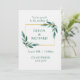 Este elegante diseño minimalista presenta un moderno marco rectangular de color dorado adornado con hojas de color verde acuático. Ideal para bodas, duchas de novias, duchas para bebés, cumpleaños y eventos formales. Personalizar el texto interior para una moda y un aspecto natural. Ideal para ocasiones botánicas o de temática elegante. vegetación, marco dorado, invitación botánica, minimalista, hojas acuarelas, invitación elegante, boda moderno, temática natural, invitación al personalizable, borde follaje