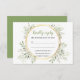 Elegante RSVP de follaje con un fondo blanco clásico, un marco circular dorado con follaje verde y una elegante plantilla RSVP fácil de personalizar