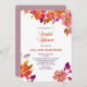 La cabecera de esta luminosa y colorida ducha de matrimonio está adornada con una acuarela de color rojo subió, rosa, violeta, violeta y verde. El pequeño confeti dorado desciende sobre el ramo y da al fondo. El texto de su personalizado está en dorado marrón y morado en el centro. La parte inferior tiene dos imágenes florales coincidentes, una a la derecha y otra a la izquierda. Las imágenes y el texto se colocan en un elegante fondo blanco. El reverso de la invitación es mauve, con el mismo superpuesto de confeti. ¡Hermoso, moderno y moda! Los colores de esta invitación son apropiados de primavera a otoño. Asegúrese de ver los productos bodas que coinciden en nuestra tienda.