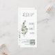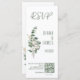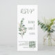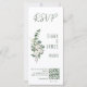 Las tarjetas RSVP, de diseño, están decoradas en tonos verdes y presentan un color verde clásico y una tipografía moderna mezclada con caligrafía elegante. La tarjeta tiene un código QR que puede hacer simplemente añadiendo la dirección del sitio web del boda; puede utilizarlo para su sitio web del boda o su lista de regalos del boda.