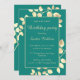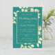 Elegantes invitaciones de color verde oscuro con hojas de beige dorado para una moda y un cumpleaños elegante.