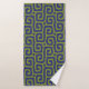 Conjunto de toallas de baño con nombre personalizado y patrón abstracto verde oliva y azul elegante.